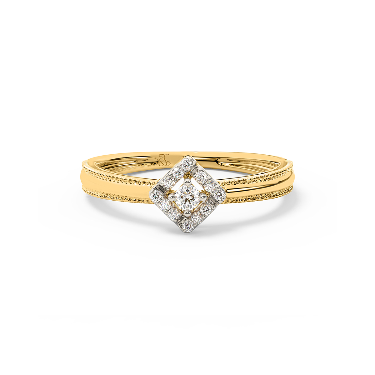 0.10 Ctw Square Halo Round Diamond Trendy Ring